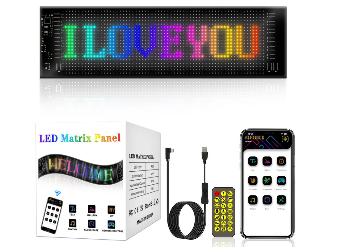 App Control LED Sign Board 20*64 ฟเล็กซิล USB โปรแกรมได้ Custom Scrolling Message ป้ายรถ จิติป์